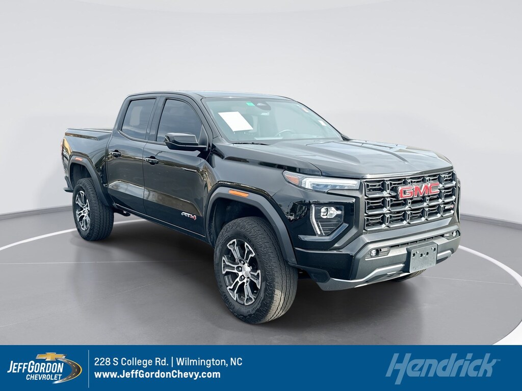 AT4 PREMIUM PACKAGE includes (HX6) Jet Black/Timber perforated leather-appointed front seating surfaces, (A45) Driver memory recall, (A7J) 6-way front passenger seat, (AT9) Power Lumbar front passenger seat, (DA5) Rear Seat Center Arm Rest, (E90) Driver seat back pocket, (K4C) Wireless charging, (KI3) heated steering wheel, (KU9) Ventilated driver and front passenger seats and (Y5W) Canyon Safety Plus Package, SUNROOF, POWER INNER SLIDING GLASS with manual shade, BEDLINER, SPRAY-ON (Includes GMC logo on headboard. CANYON SAFETY PLUS PACKAGE includes (UD7) Rear Park Assist, (UFB) Rear Cross Traffic Braking and (UKI) Blind Zone Steering Assist, ENGINE, 2.7L TURBO HIGH-OUTPUT (GM Estimated 310 hp [231 kW] @ 5600 rpm, GM Estimated 430 lb-ft of torque [583 Nm] @ 3000 rpm) (STD), TRANSMISSION, 8-SPEED AUTOMATIC, 8L80 (STD), TRAILERING PACKAGE includes trailer hitch and 7-pin connector (Includes (JL1) Trailer brake controller. GMC 4WD AT4 with Onyx Black exterior and Jet Black/Timber interior features a 4 Cylinder Engine with 310 HP at 5600 RPM*. Non-Smoker vehicle